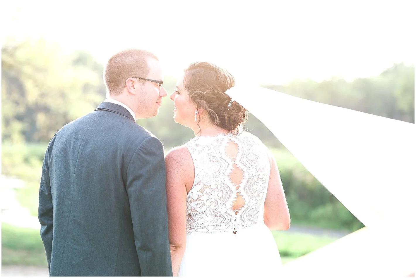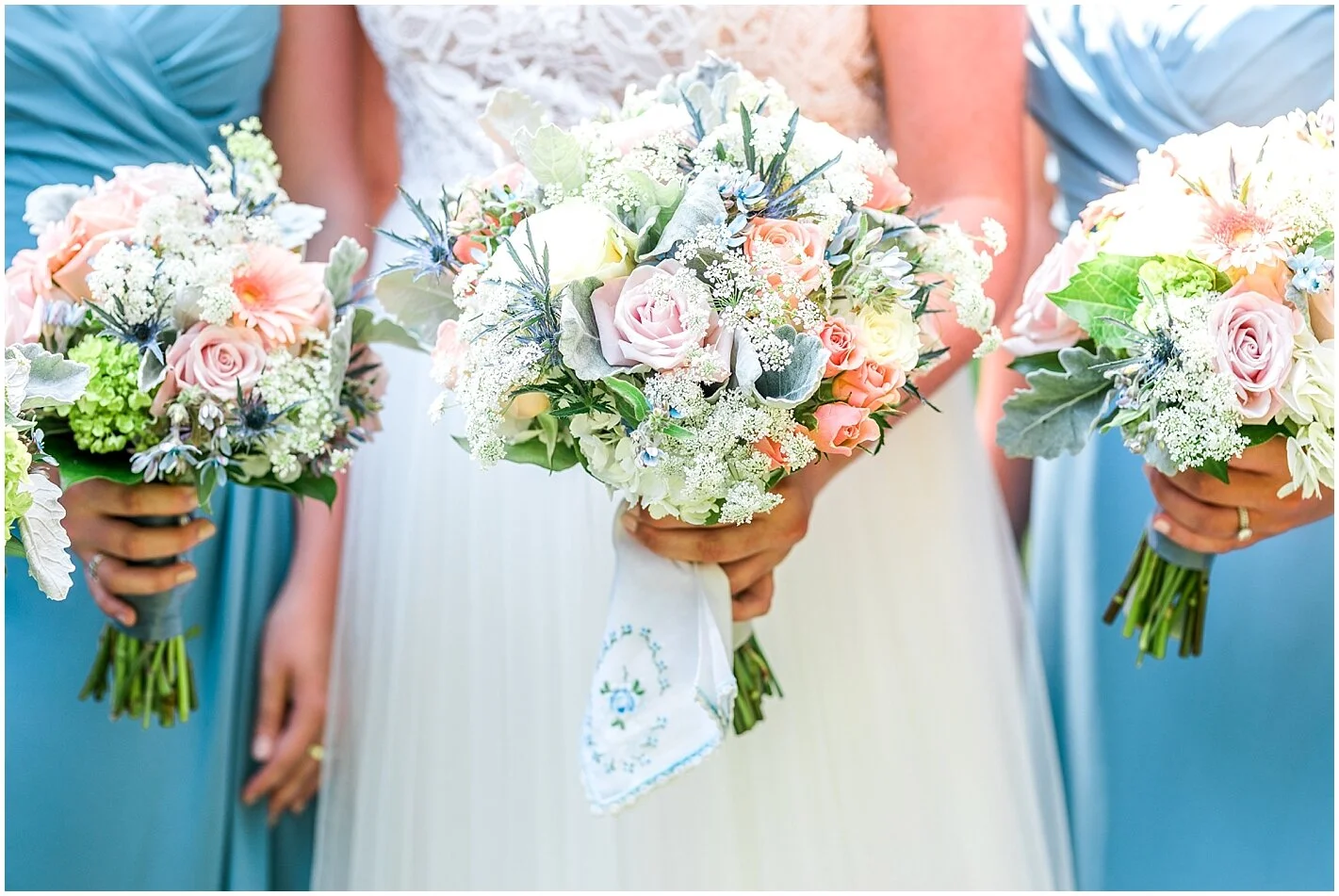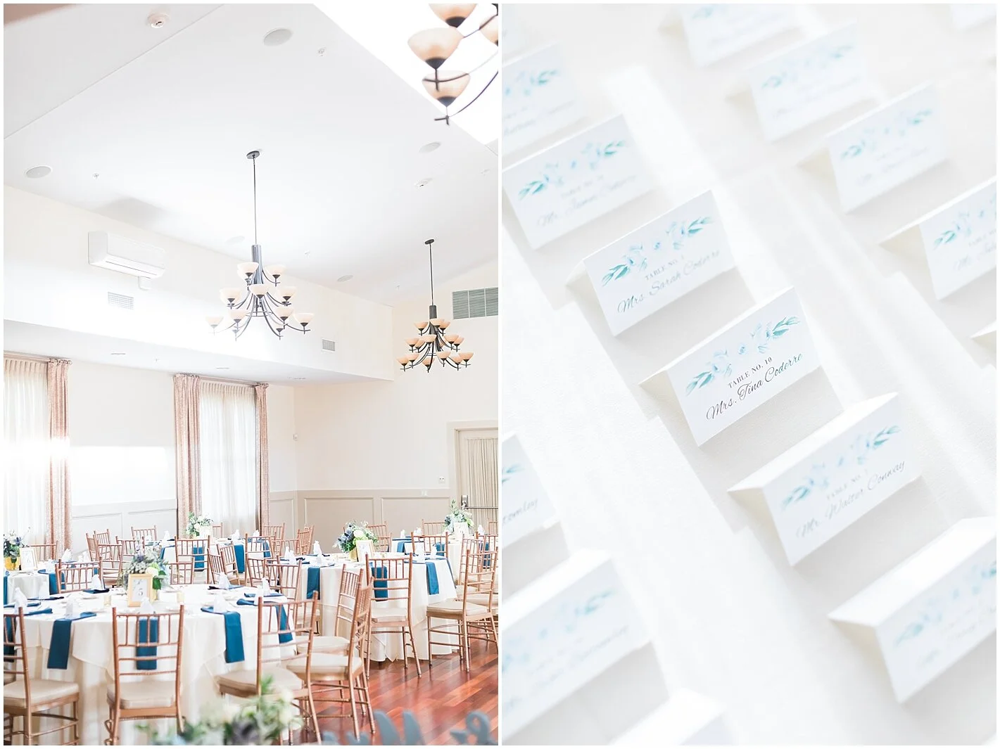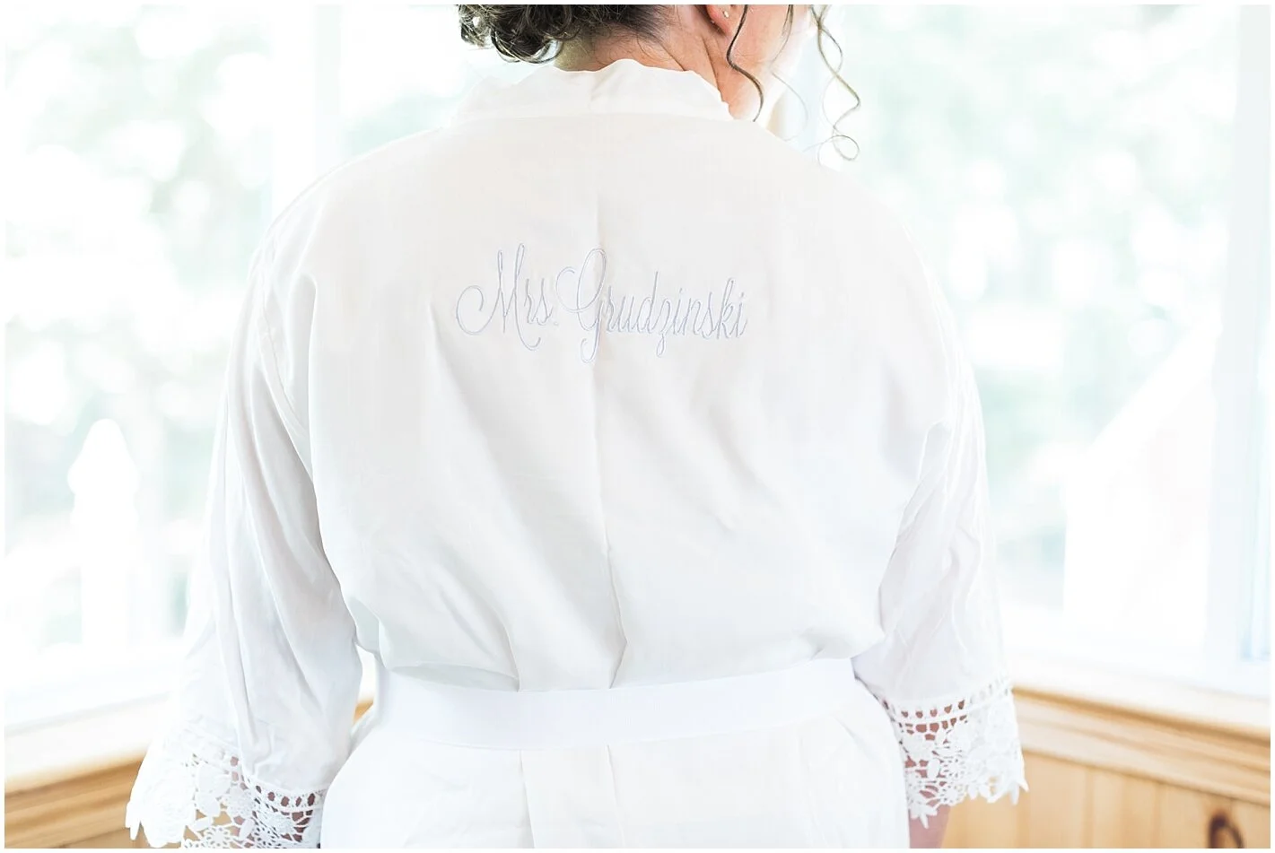 The reception at Merrimack Valley Golf Club was stunning!! The view of the golf course with the mountains in the back was so gorgeous! That is actually what Eric and Katie fell in love with when choosing this venue. The blue and grey wedding party attire was the perfect color to pop out against this background – it looked SO amazing, as you’ll see. I have never seen a wedding gown like Katie’s. The lace top with a peek-a-boo back and tulle skirt. And her cathedral veil!! SO STUNNING! I think most photographers get excited when we see a veil like Katie’s. Inside the reception hall was beautiful cathedral ceilings and large windows letting in lots of light! My favorite! The tables were decorated with gorgeous blue, peach and white flowers for the centerpieces and cute little boxes the read “let love glow” which had light up ice cubes in them. Such a fun and cute idea! I was very impressed with how the invitation suite, the signs, favor boxes, and everything matched with the same beautiful blue water color design! One of my favorite personal touches was their cake topper; a house with balloons and it said “you’re my greatest adventure” “Up” is one of my favorite movies of all time, so I loved this cake topper so much!! And Eric and Katie are a lot like Ellie and Carl. They are sweet, soft spoken, easy going, and love an adventure! AND Katie LOVES to scrapbook!