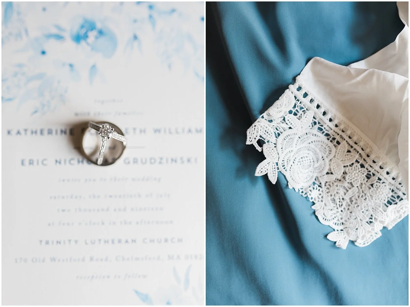 Katie & Eric were married on Saturday, July 20th, at Trinity Lutheran Church in Chelmsford, MA. The ceremony was so unique and something I have never seen before. The Pastor gave Katie and Eric cleaning supplies and household items that went along with the message of how to have a successful marriage. She wanted them to remember the message and the vows they made to one another when they see these items around their home or at the store. Such a clever idea and made the ceremony so fun!
